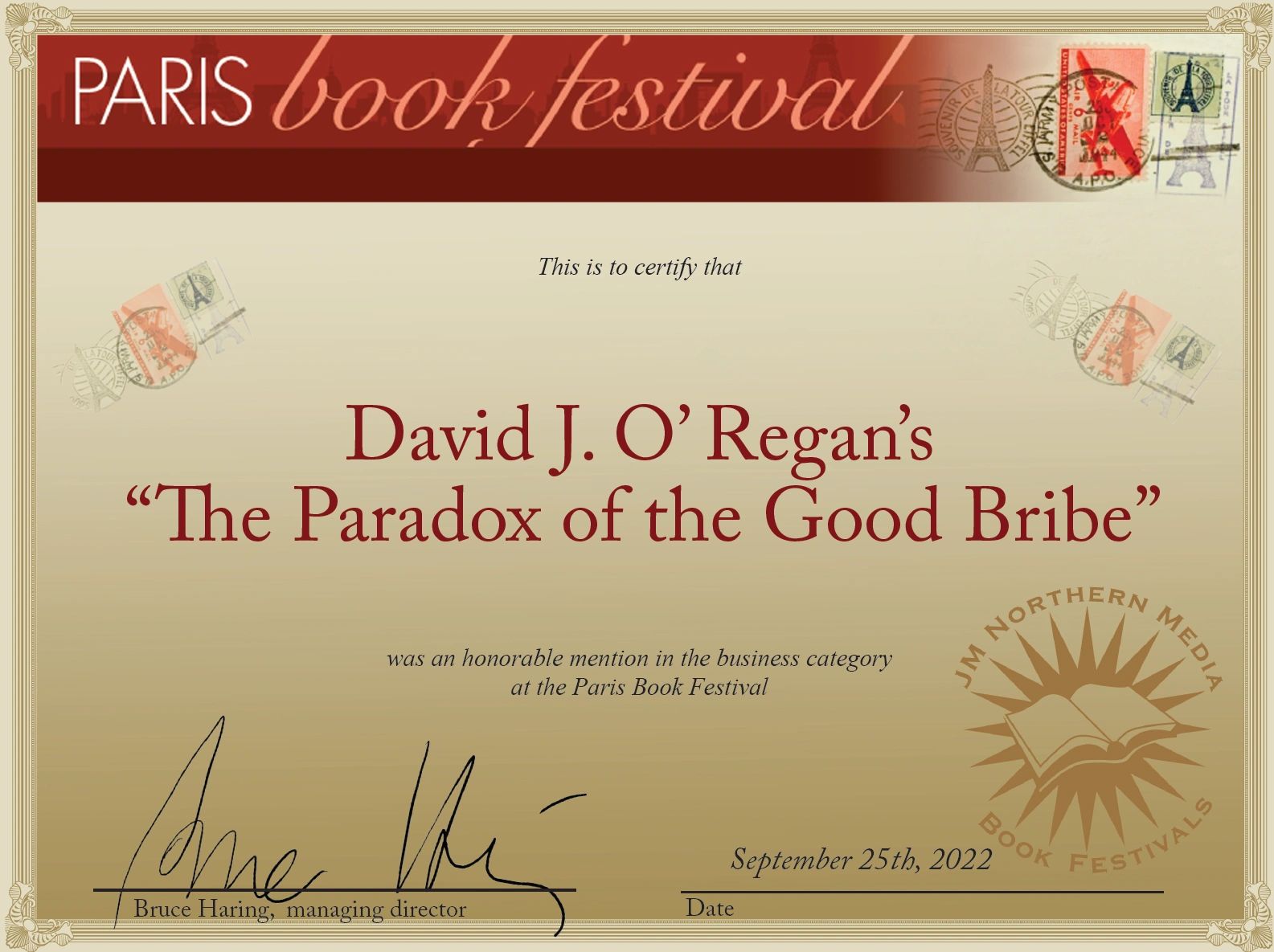 “The Paradox of the Good Bribe”: an honorable mention in the Paris Book Festival, in the Business category.